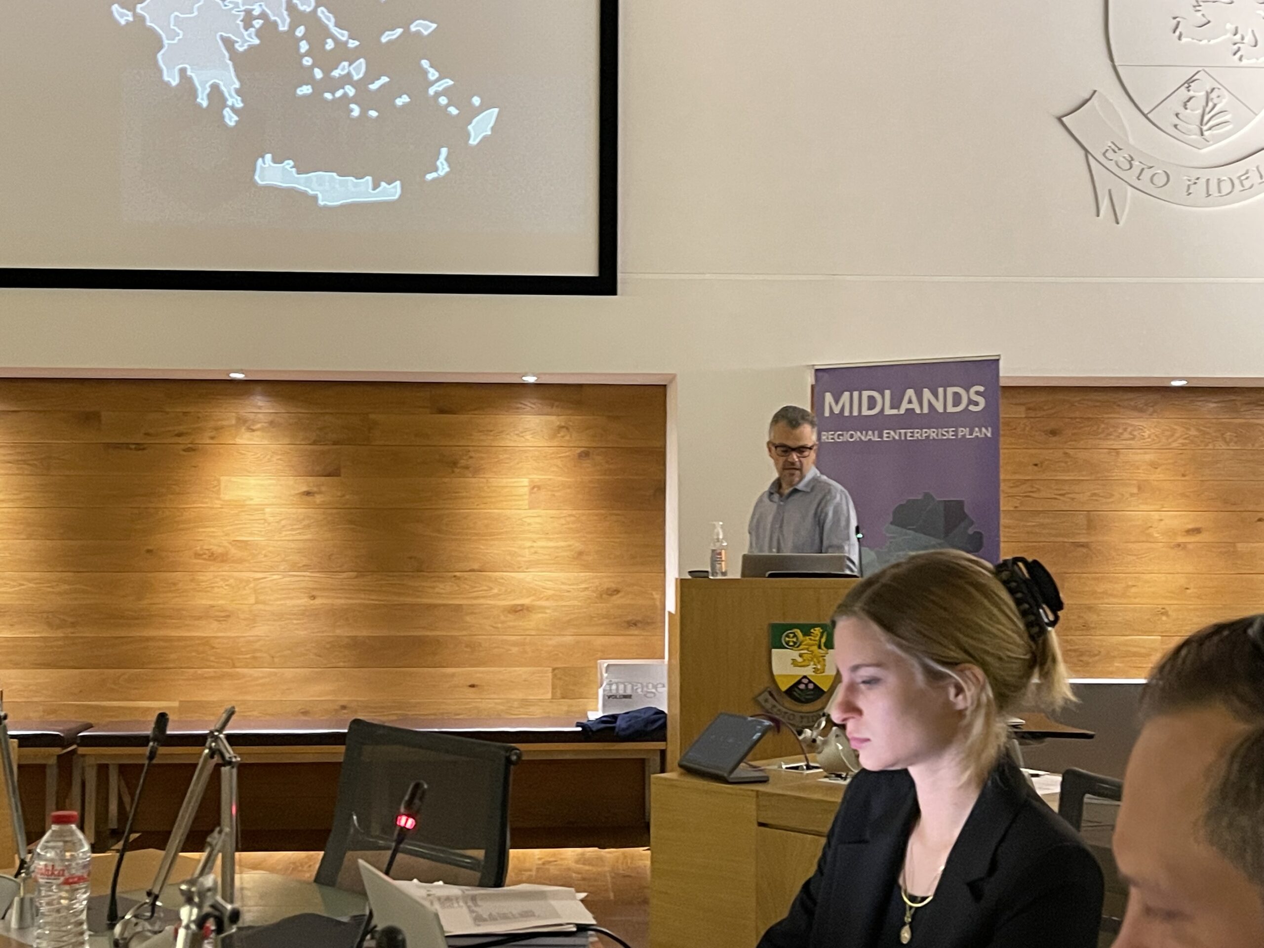 During the two-day visit, the Greek delegation was informed by workshops and seminars about the project implemented by the Regional Transition Team of the Midlands Region within the framework of the National Just Transition Fund. In parallel, site visits were made to major projects delivered through the National Just Transition Fund, including Ferbane Business and Technology Park, Lough Boora Discovery Park, Kilcormac Development Association, Lough Ree Access For All, Lanesboro Food Hub and Co:worx